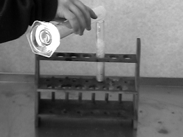 Procedure- First pour 5 ml of zinc into one of the cylinders. Then dump 10 ml of the hydrochloric acid in the other empty cylinder. Next place the test tube in the test tube holder (get a little longer test tube to be careful)! First dump in the 5 ml of zinc in test tube. Last dump in the 10 ml of hydrochloric acid (slowly). May not use all 10 ml of acid.