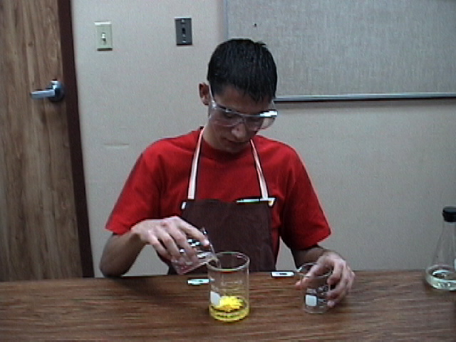 F) Using the 500 ml beaker, mix them together which will produce a yellow substance.